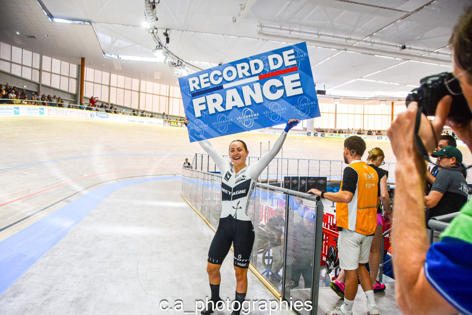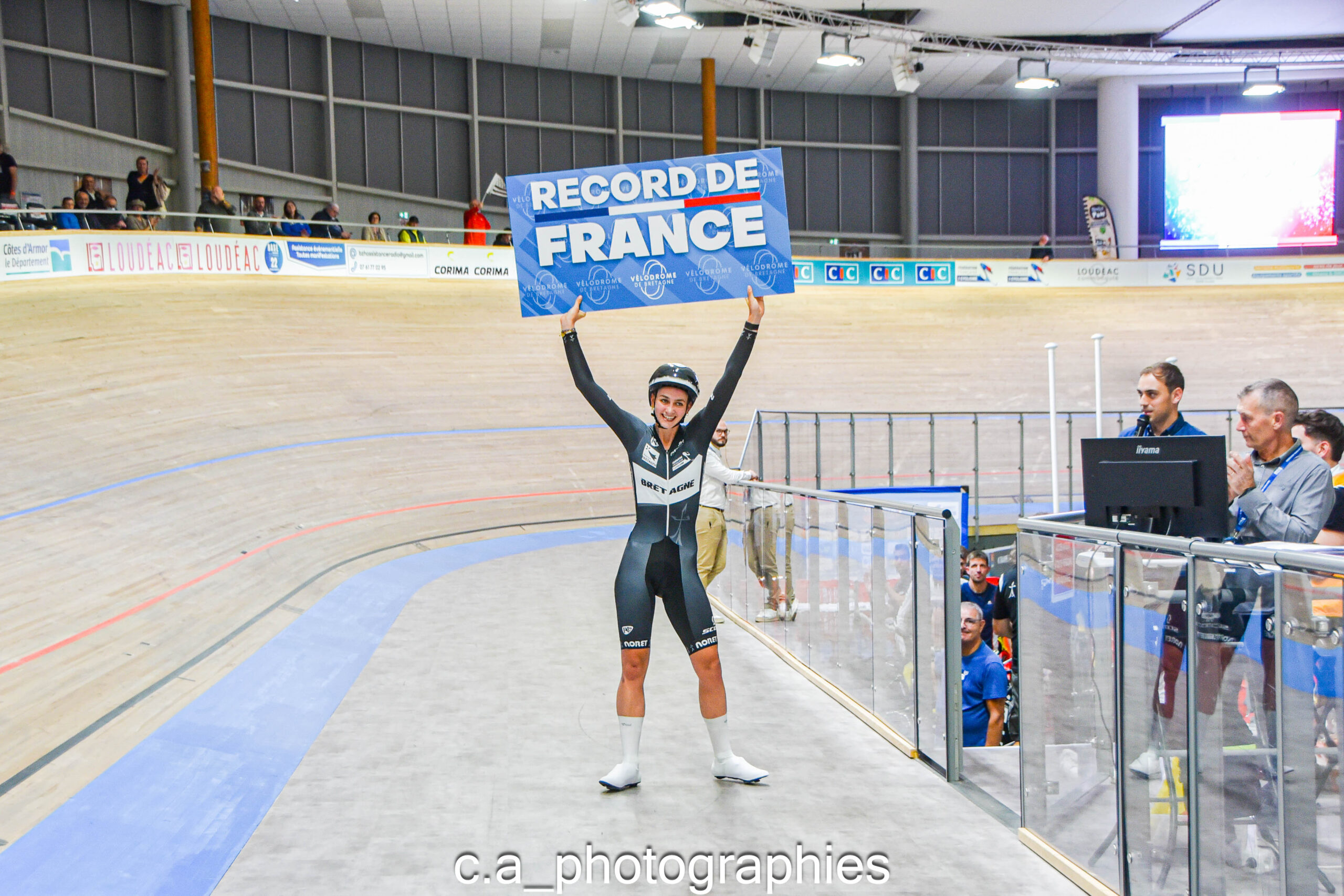 Zoé BIHAN (Comité de Bretagne) signe un superbe temps de 3’38’’622 sur la poursuite individuelle U19 (49,39 𝘬𝘮/𝘩 𝘥𝘦 𝘮𝘰𝘺𝘦𝘯𝘯𝘦 !), effaçant l’ancien record fixé à 3’44’’486.