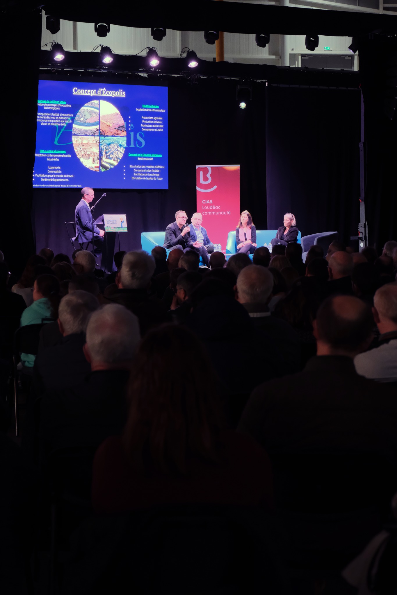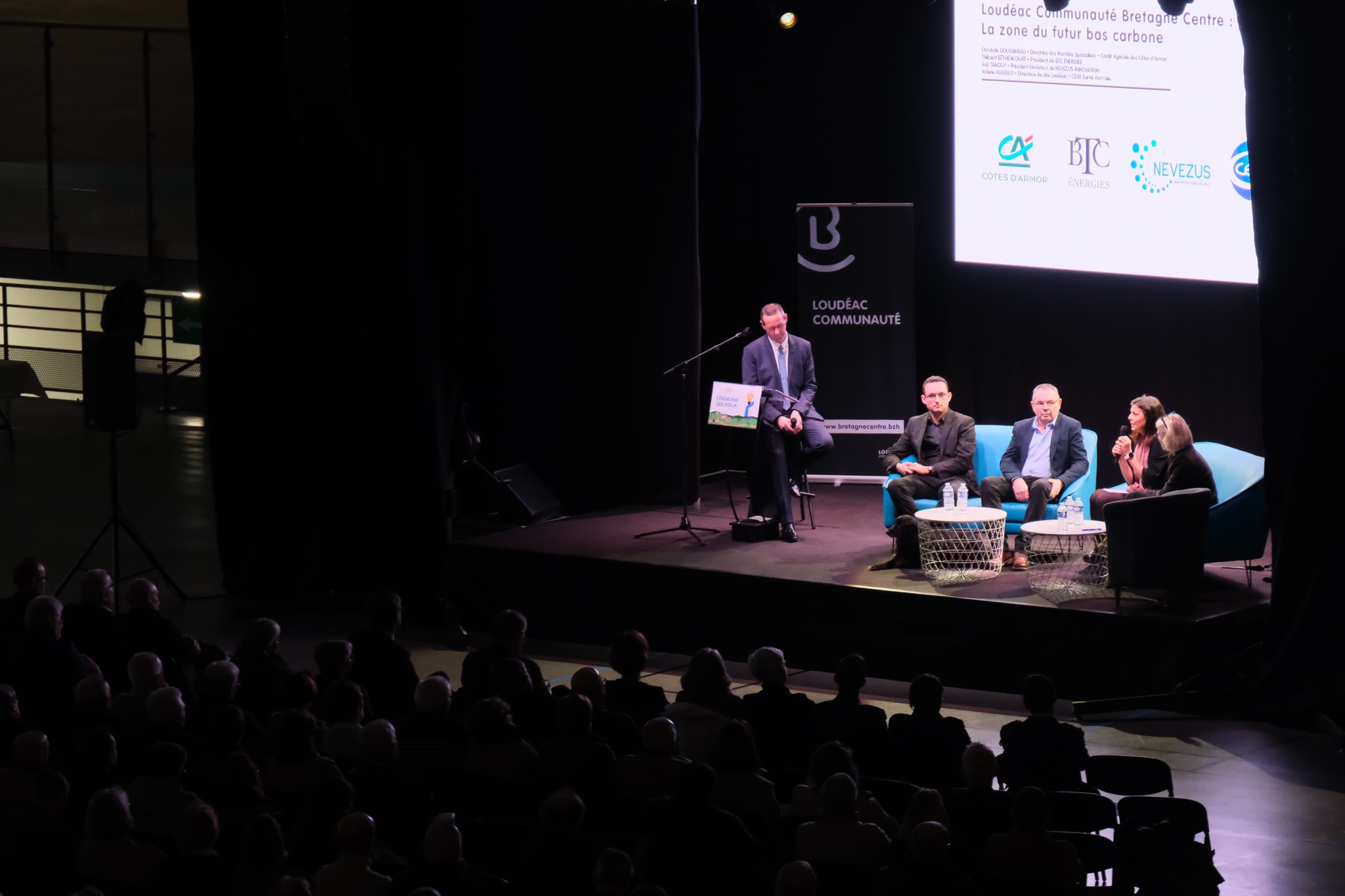 Après une ouverture rythmée par les notes des élèves des écoles de musique, des orchestres à l’école et au collège, une table ronde était consacrée aux enjeux de la zone du futur bas carbone. Cet échange a réuni Christelle DOUSSINEAU (Crédit Agricole des Côtes d’Armor), Thibault BÉTHENCOURT (BTC ÉNERGIES), Joël TANGUY (NEVEZUS-INNOVATION) et Valérie AUGELLO (CEVA Santé Animale). Leurs expertises croisées ont illustré ce projet qui vise à concilier développement industriel, innovation technologique et transition énergétique.